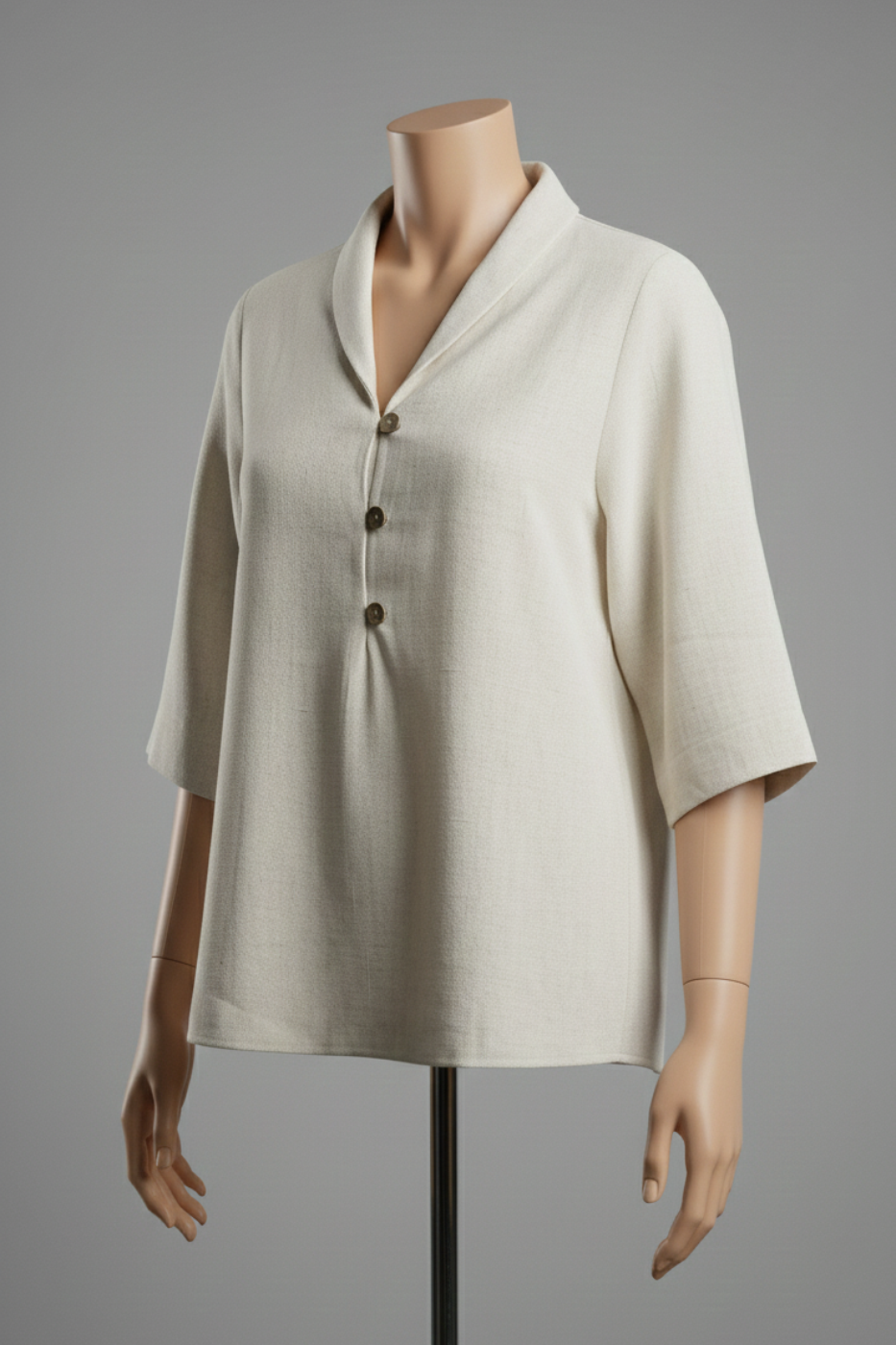 The Dune Walker Shirt is a breezy, essential top crafted from breathable Linen fabric in a crisp off-white color. Designed with a casual yet polished aesthetic, it features three natural wooden buttons for a subtle, earthy detail. This shirt offers cool comfort and is the perfect versatile piece for relaxed, stylish day-to-day wear.
